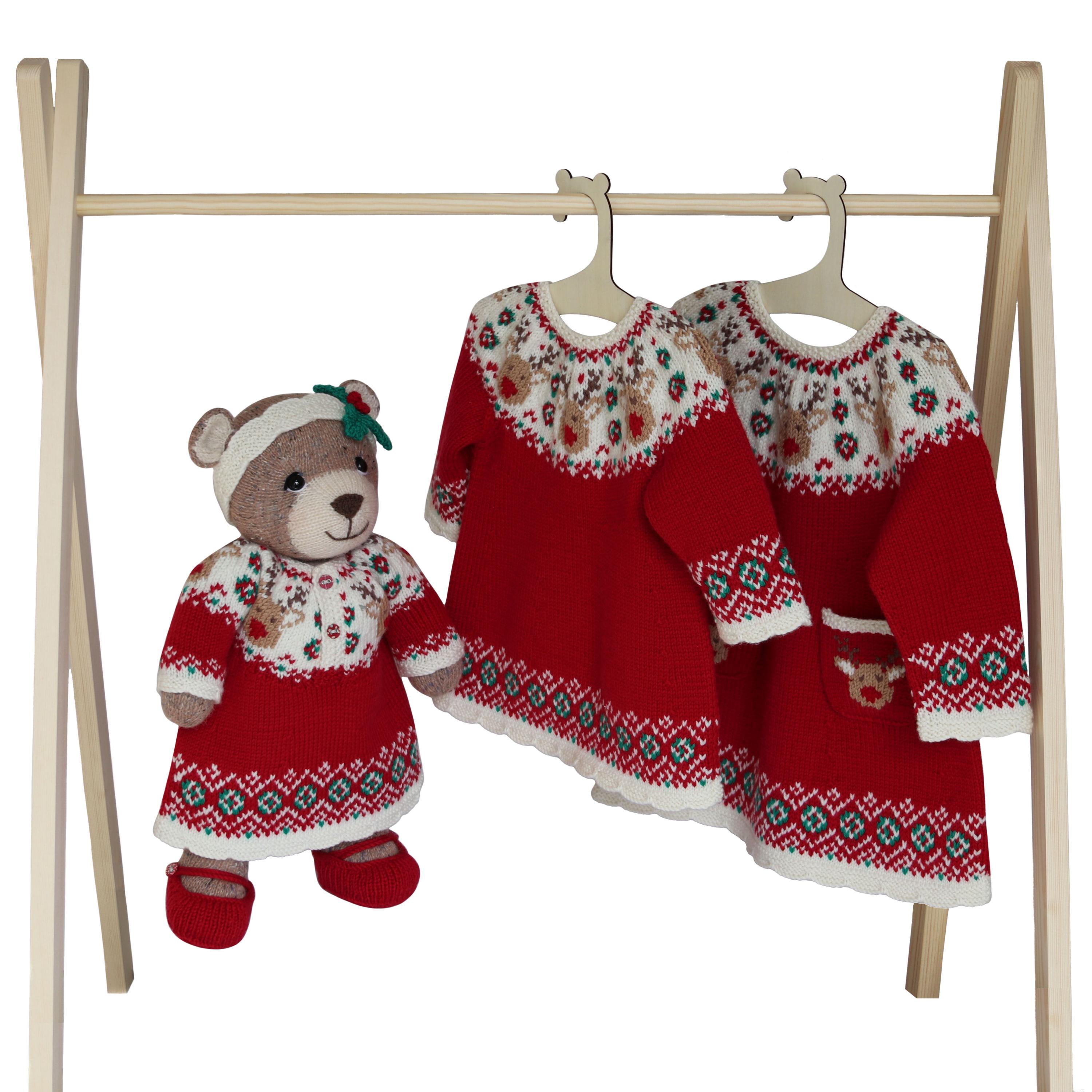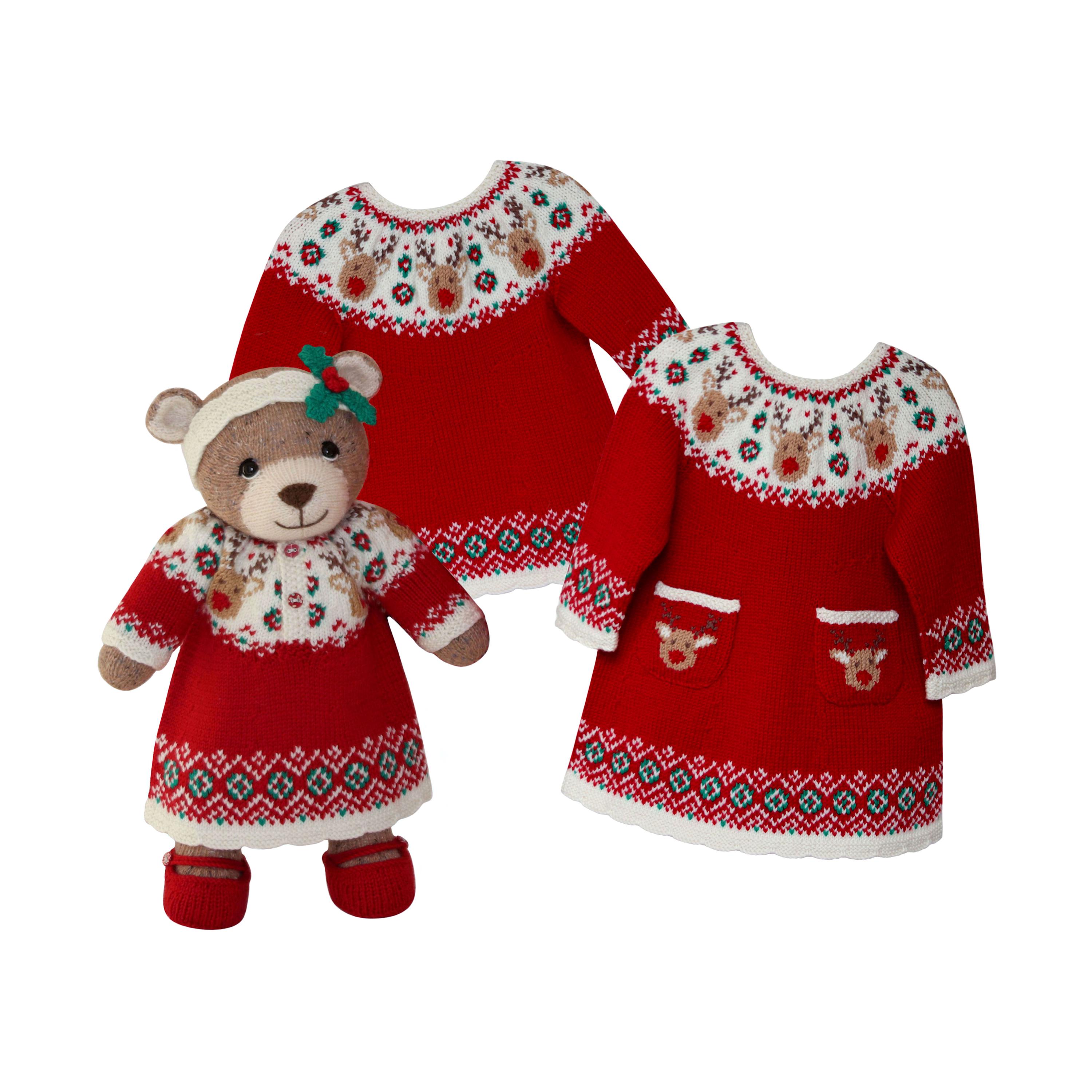 Please note: This listing is for the digital KNITTING PATTERN to create the pictured Christmas dress. It is not for the finished item, and it does not include the teddy.