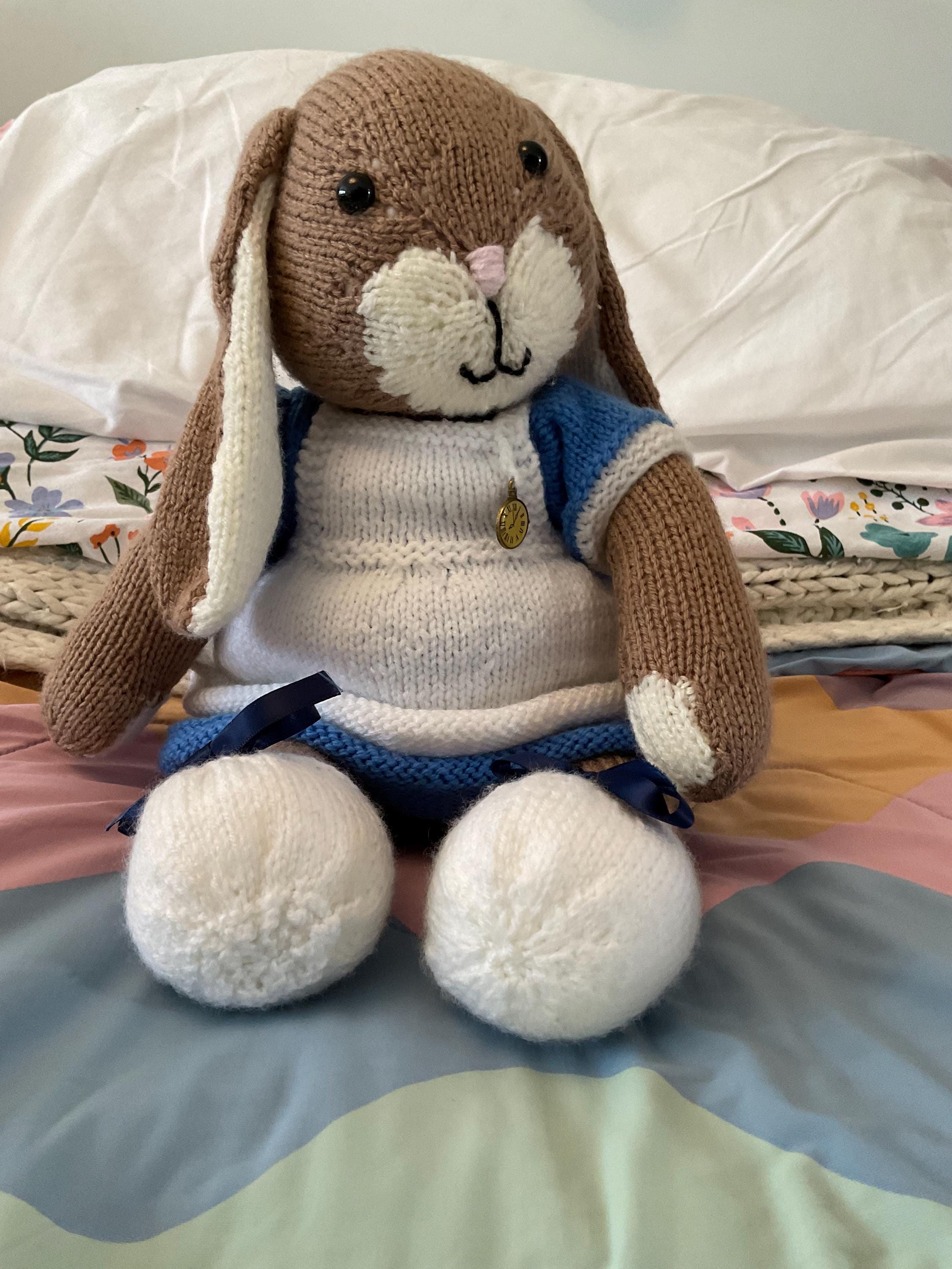 Please note: This listing is for the digital KNITTING PATTERN to create the pictured bunny teddy. It is not for the finished item, and it does not include any of the outfits.