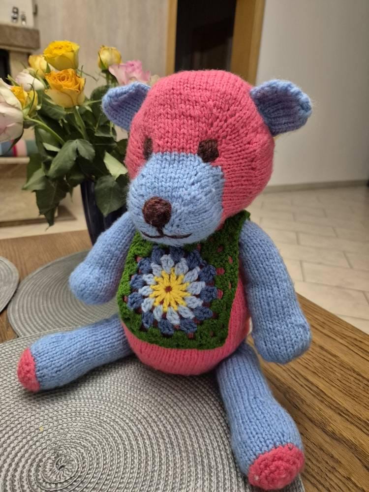 This was a simple easy pattern to knit, and it has a special place in my heart as I only knit this teddy for very special occasions!