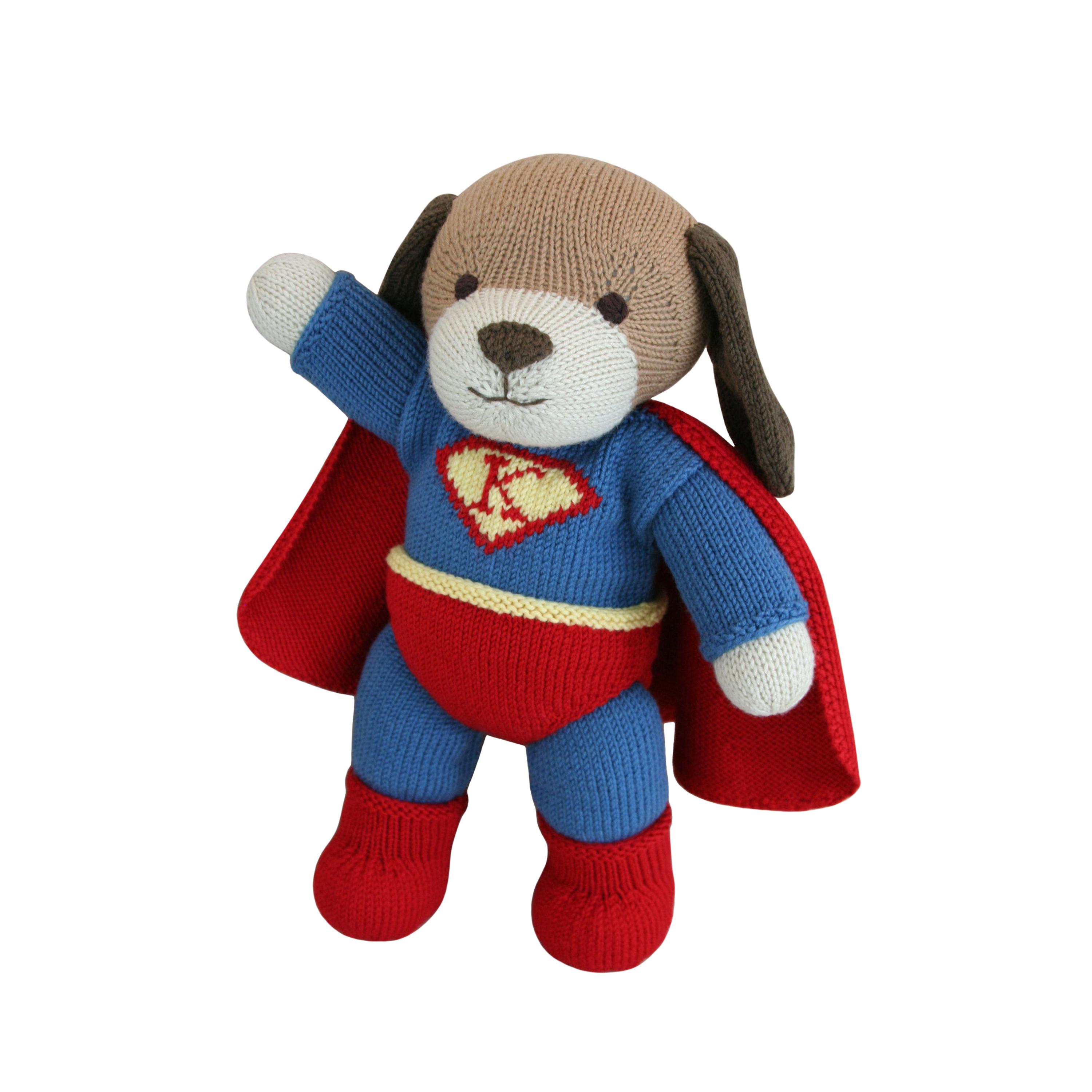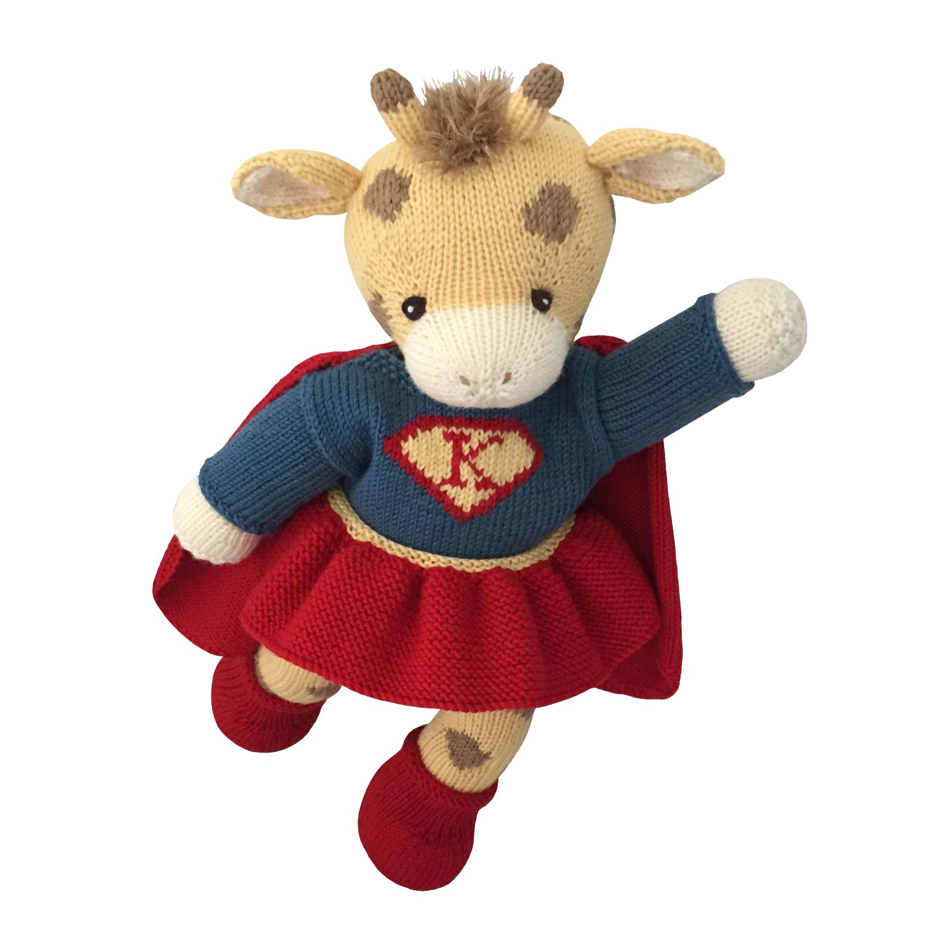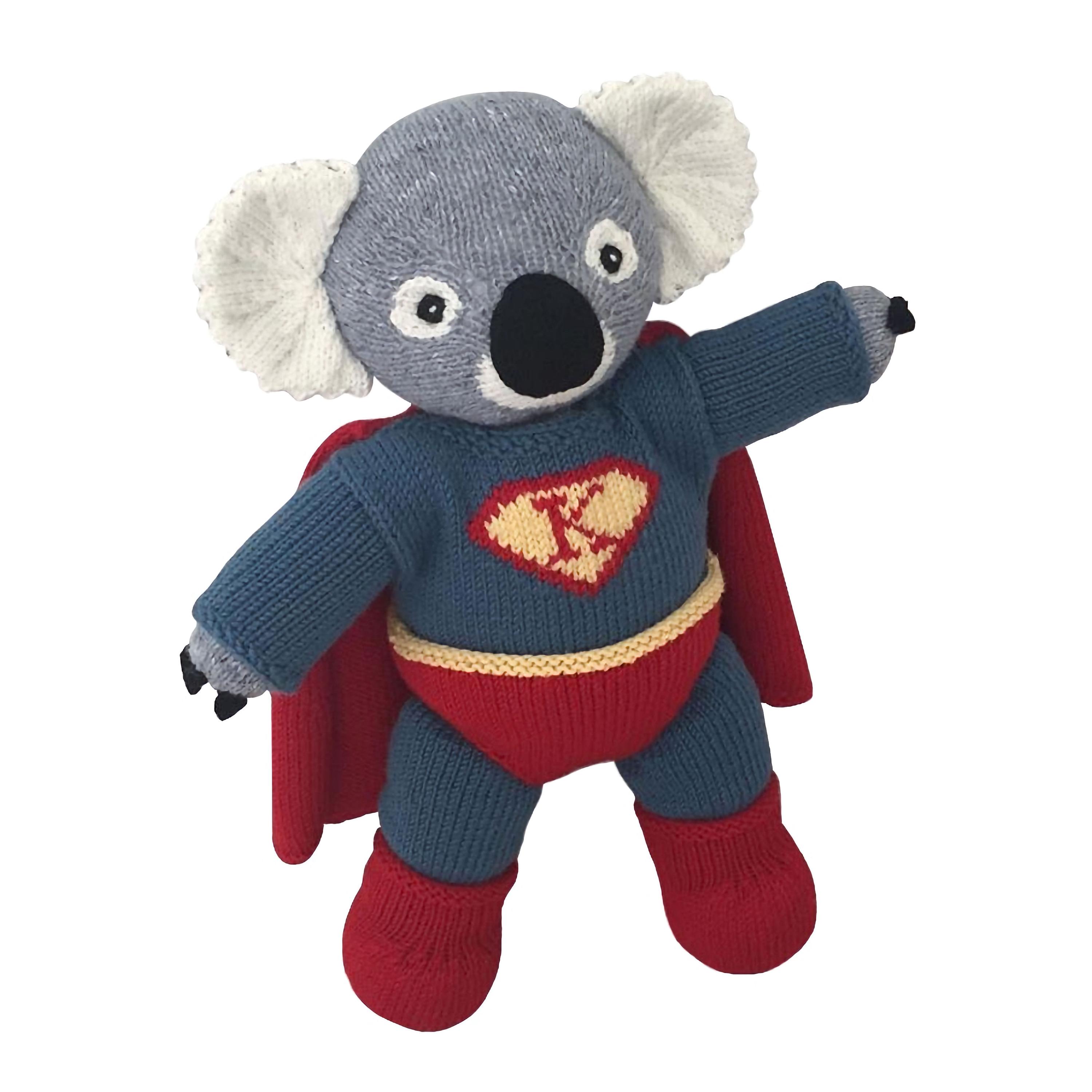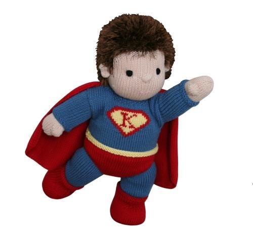 This pattern includes a top with a superhero logo, trousers and a skirt so you can make a superboy or supergirl, pants, a cape and boots. The logo is shown with a ‘K’ for Knitables but the pattern includes an alphabet chart and blank grid so you can design your own logo. It is designed to fit the teddies and dolls in the Knit a Teddy range. The clothes will also fit 15" shop bought teddy bears.