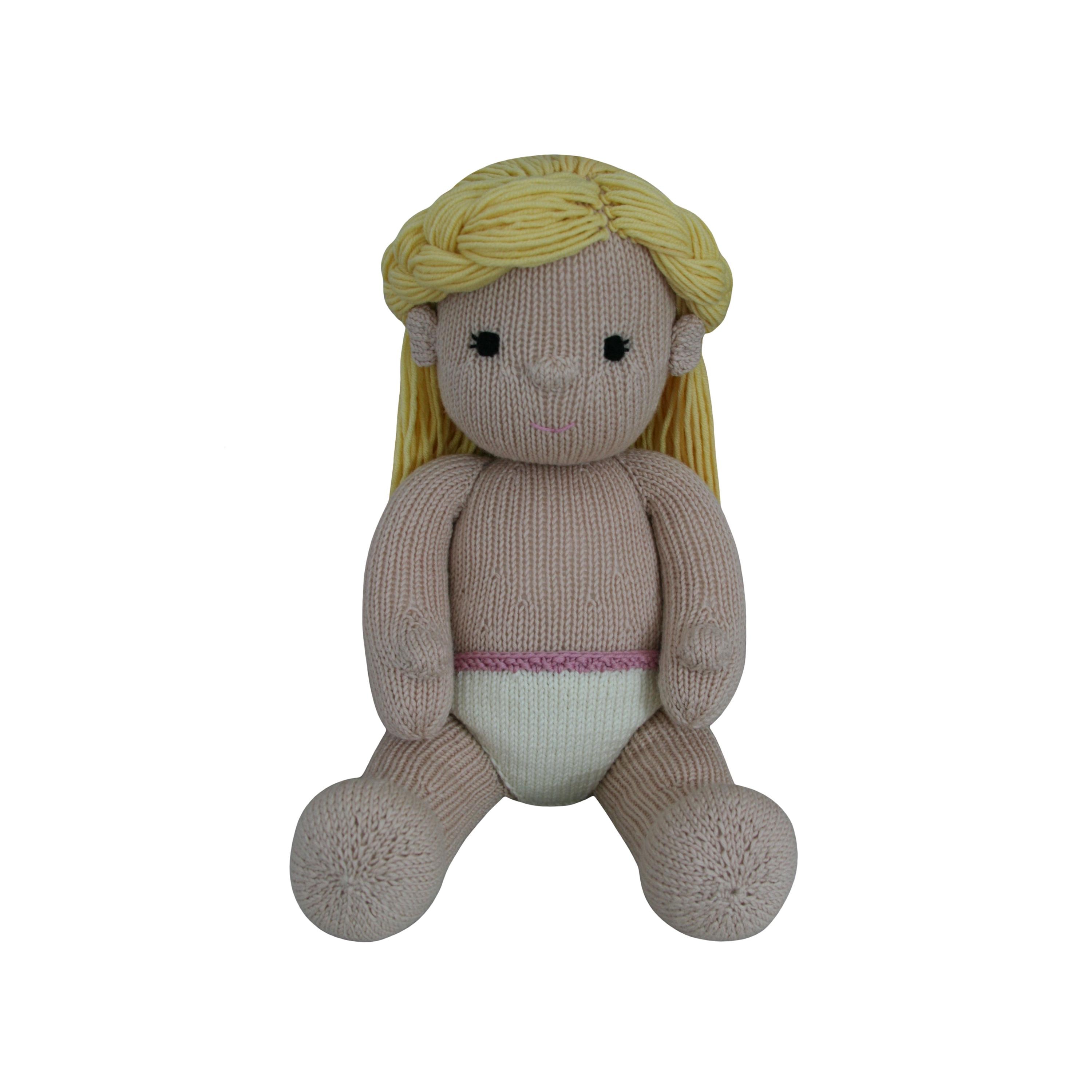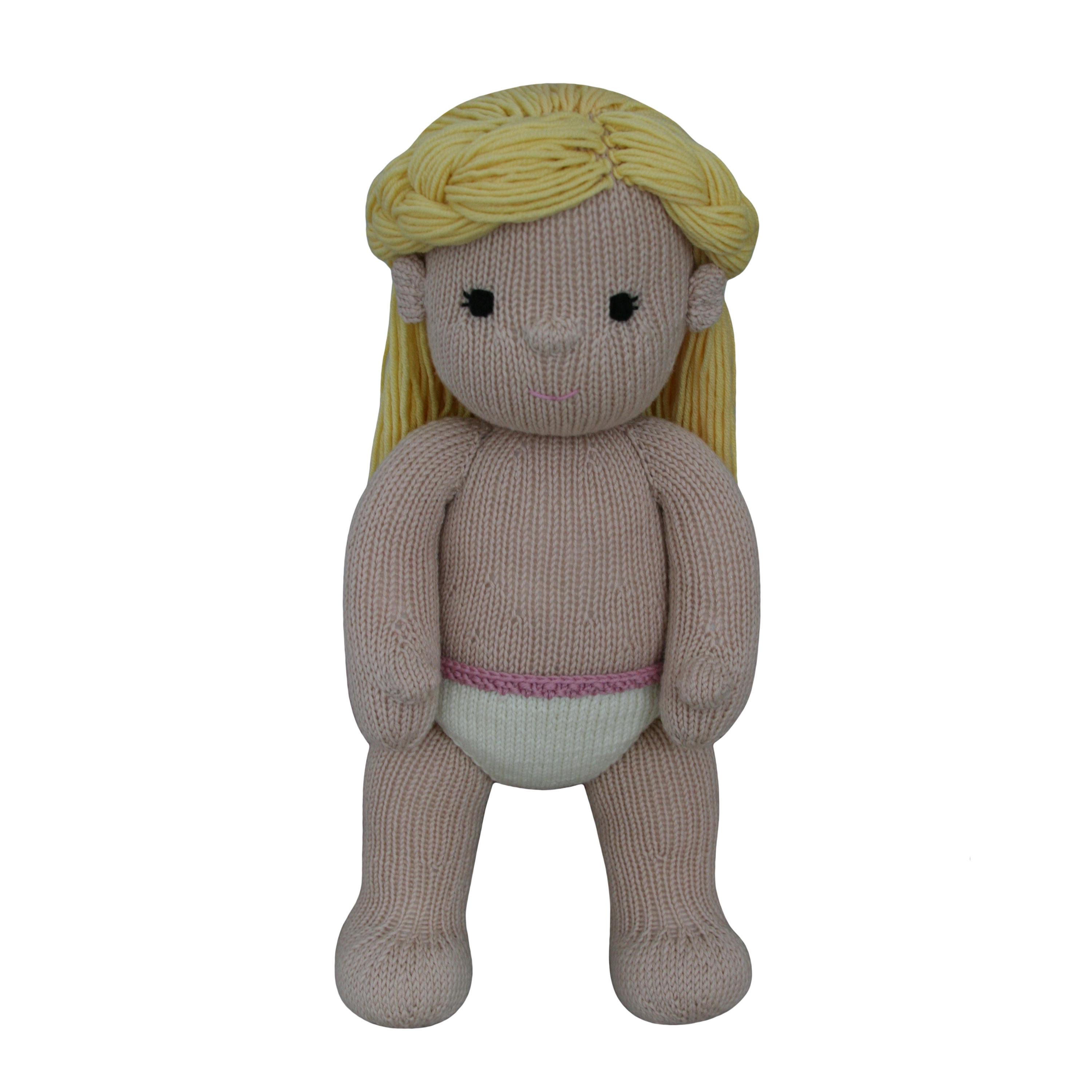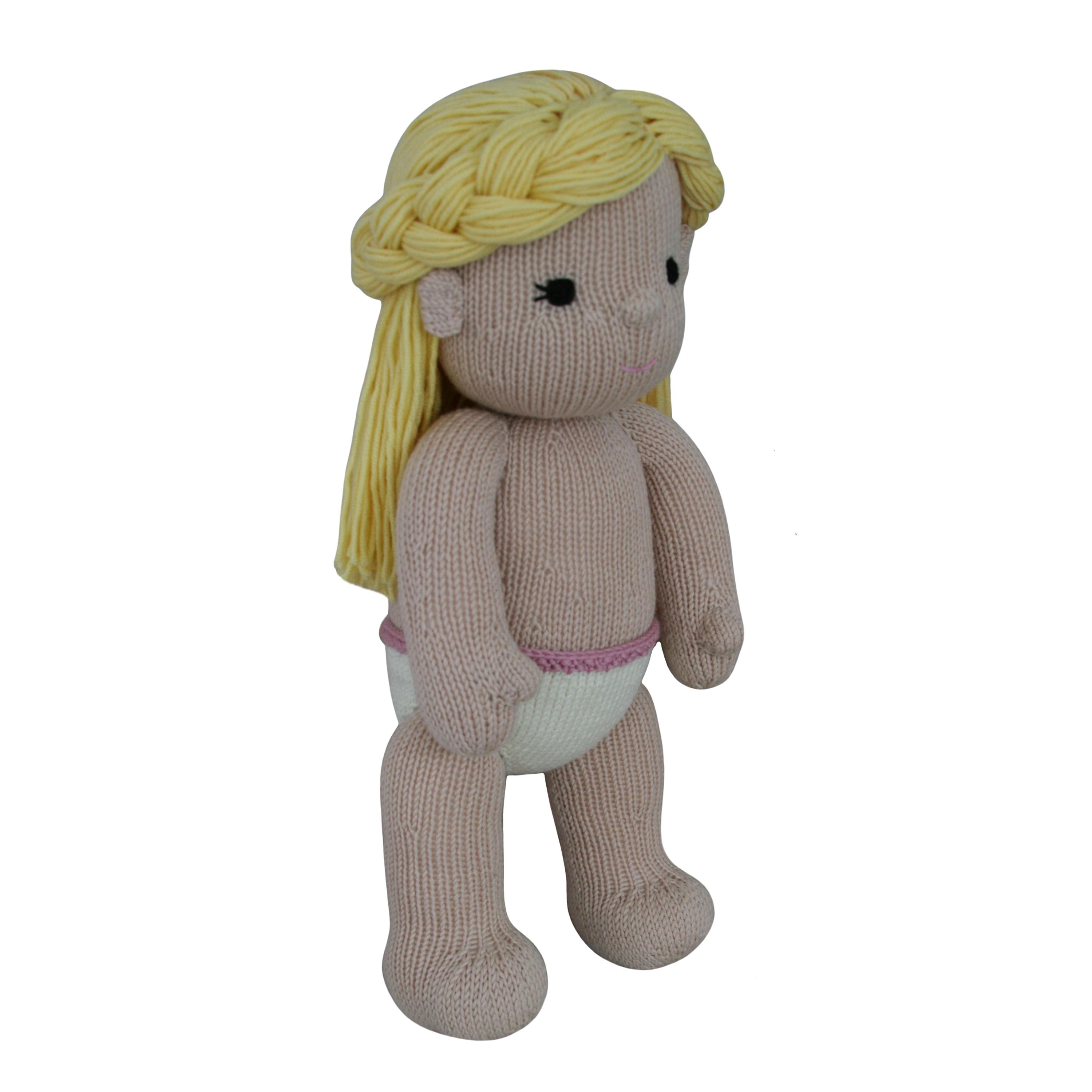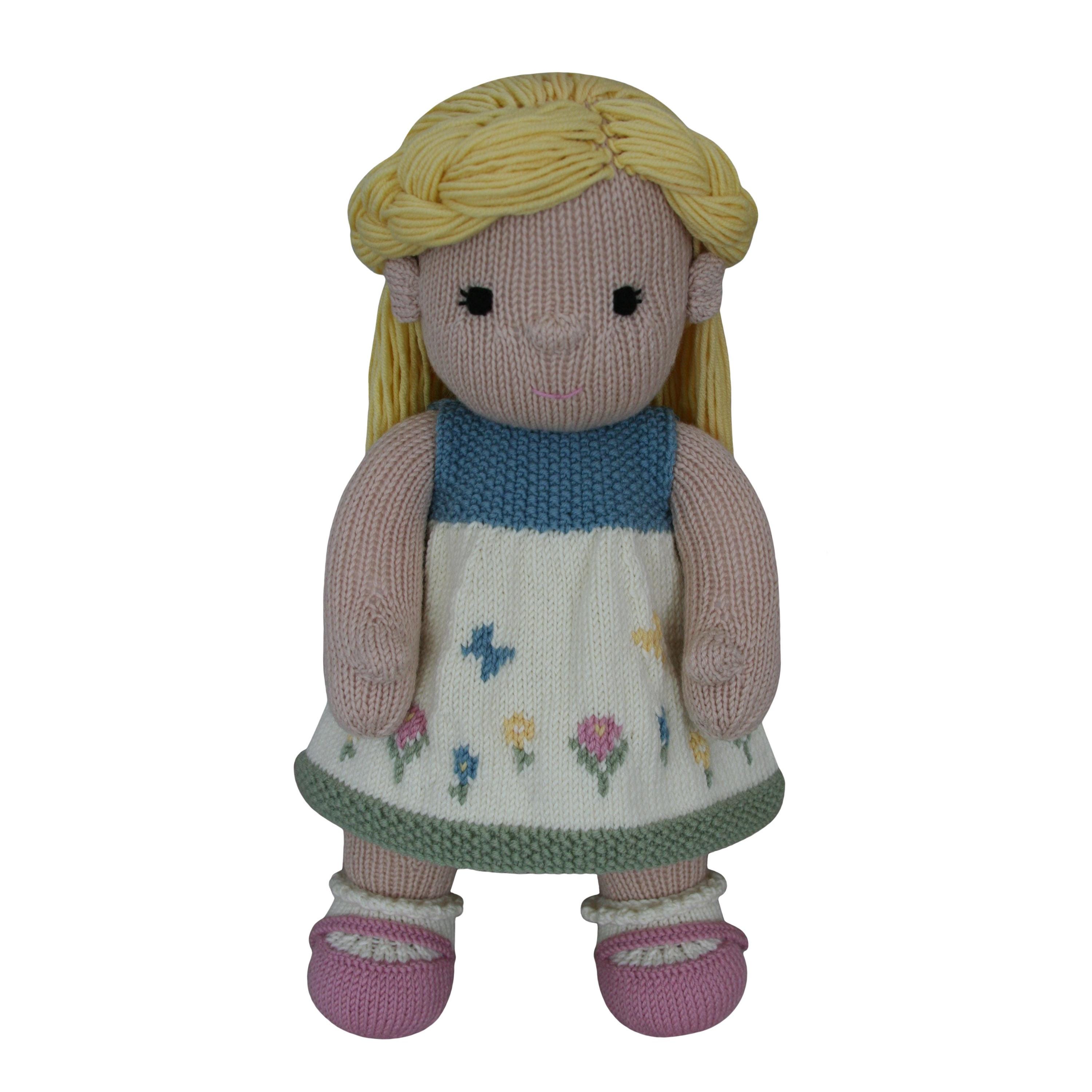 Please note: This listing is for the digital KNITTING PATTERN to create the pictured doll. It is not for the finished item, and it does not include any of the outfits.