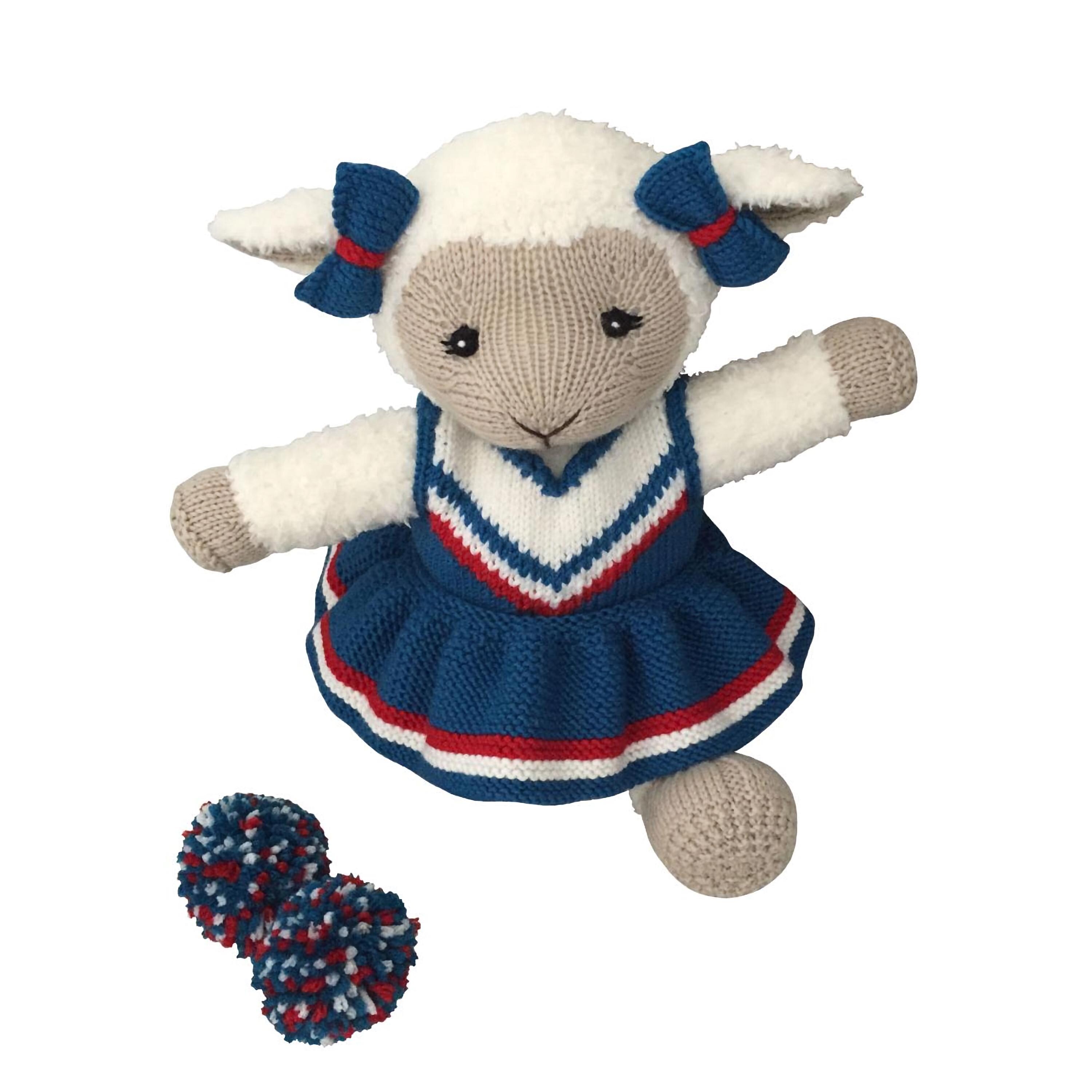 The pattern includes a top, a skirt, some briefs, cheer shoes, bows and pom poms. It is designed to fit the teddies and dolls in the Knit a Teddy range. The clothes will also fit 15" shop bought teddy bears.