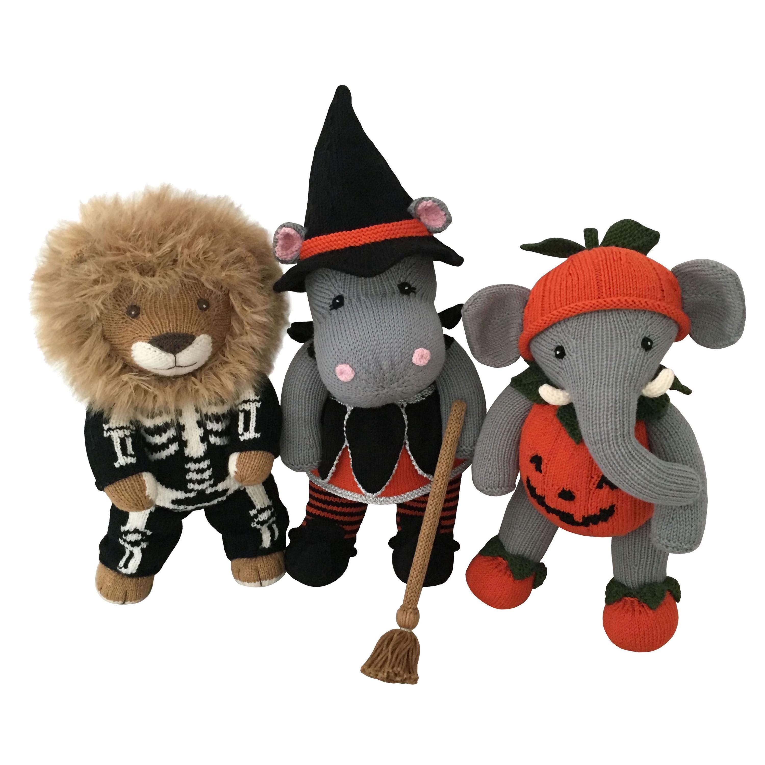 The majority of the Knit a Teddy animals and dolls measure approximately 38cm (15in) when standing, although some of the animals, such as the giraffe and lion, are slightly taller. Please refer to the individual listings for the exact sizes. The clothes are designed to fit all the animals and dolls, although some of the hats may not fit some of the animals. The clothes also fit shop bought 15in teddy bears.