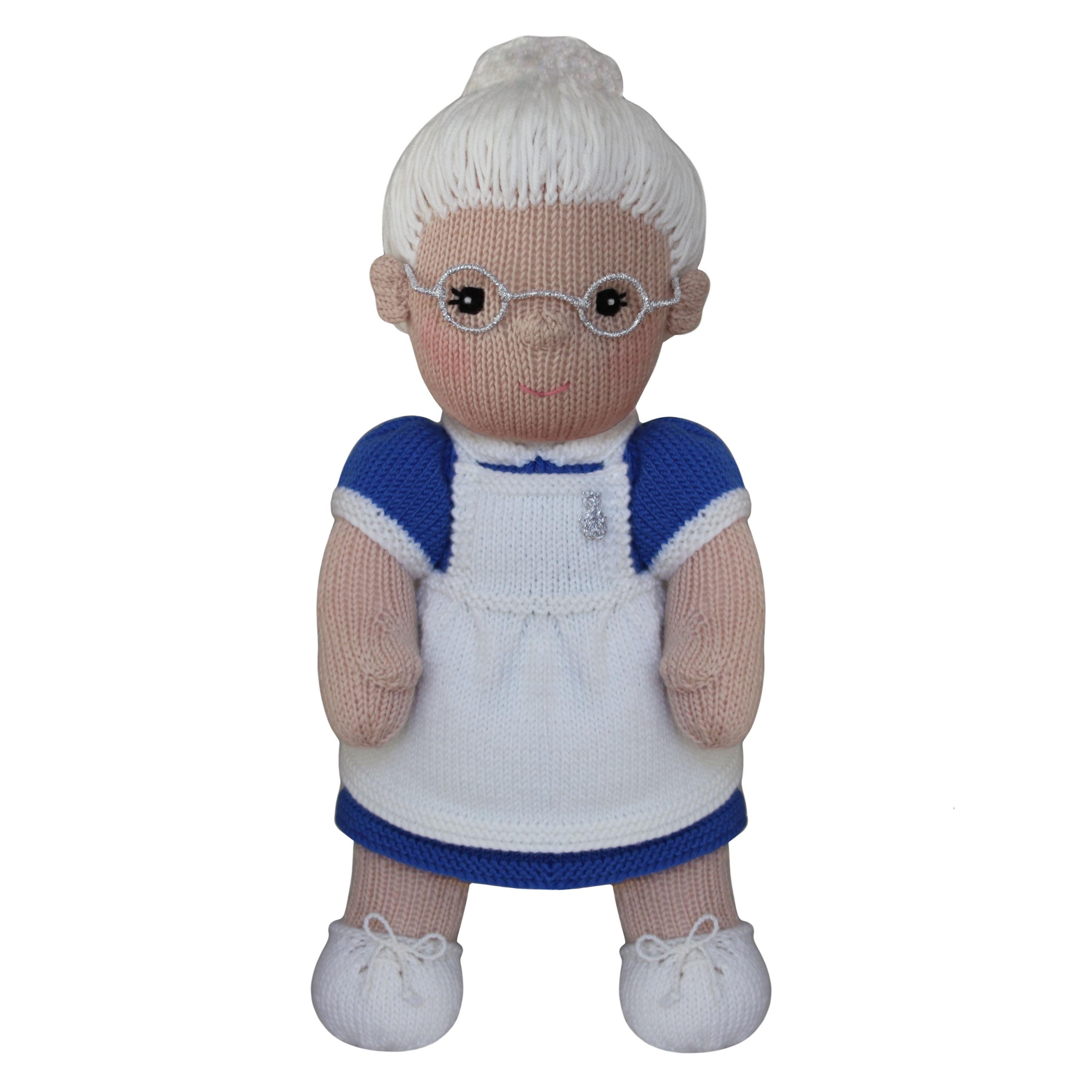 The pattern includes a dress, apron with fob watch and shoes. It is designed to fit the teddies and dolls in the Knit a Teddy range. The clothes will also fit 15" shop bought teddy bears.