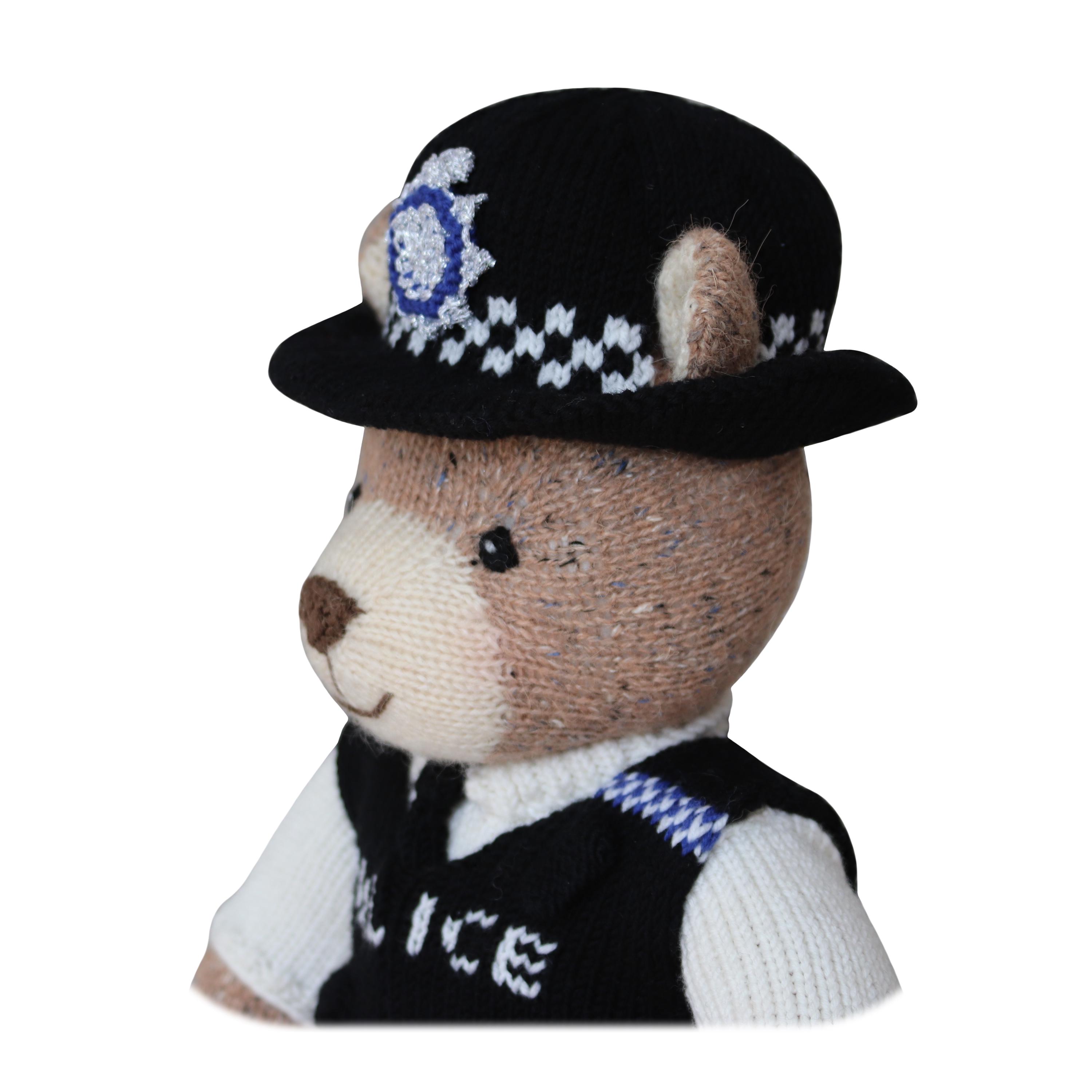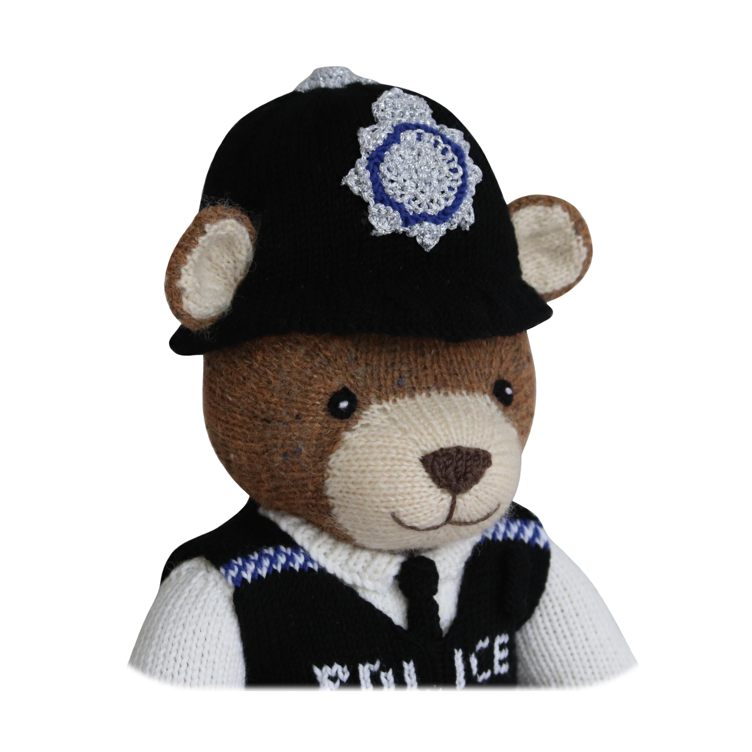 The pattern includes a police vest, shirt and tie, trousers, boots and three different types of police hat. It is designed to fit the teddies and dolls in the Knit a Teddy range. The clothes will also fit 15" shop bought teddy bears.