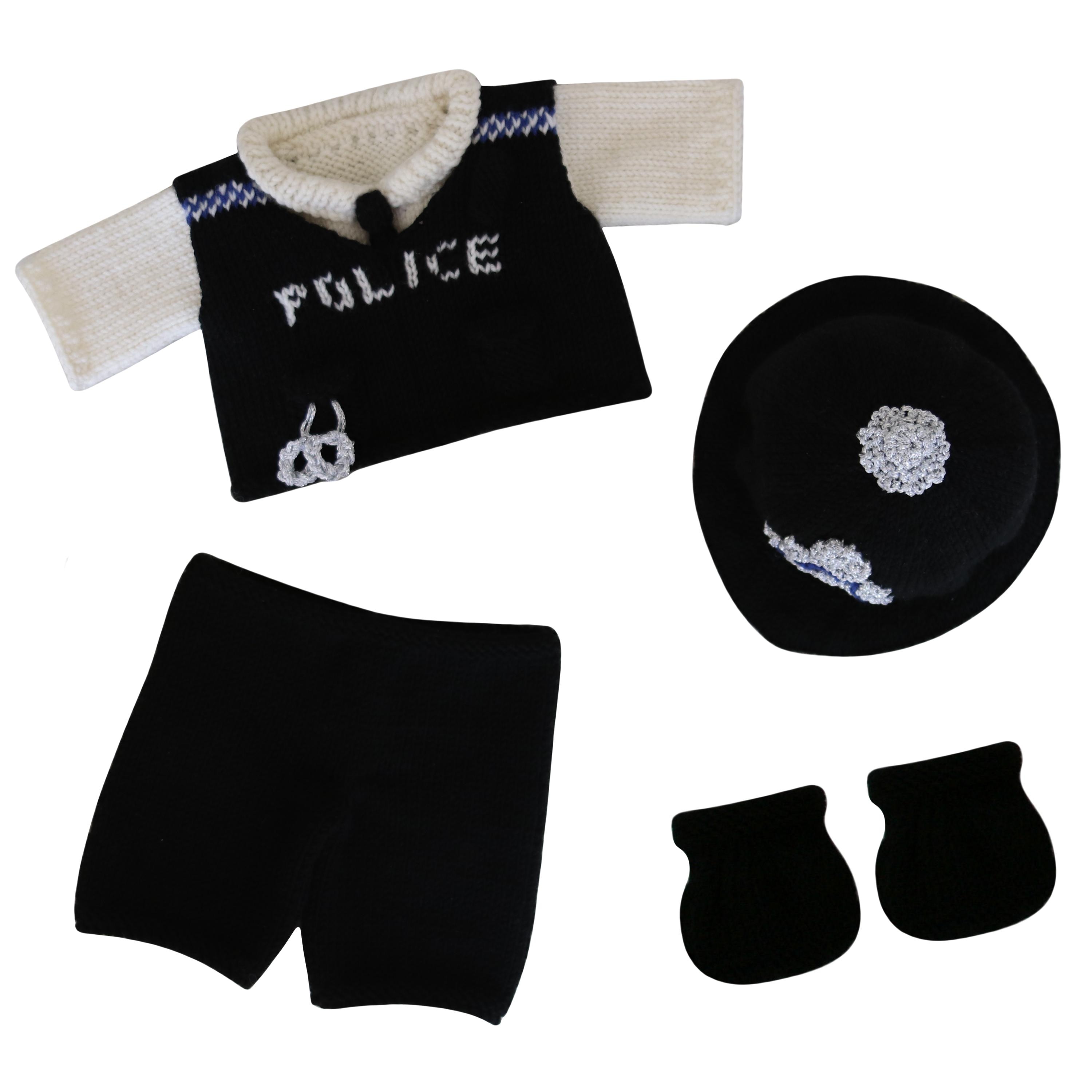 Please note: This listing is for the digital KNITTING PATTERN to create the pictured police officer outfit. It is not for the finished item, and it does not include any of the teddies.